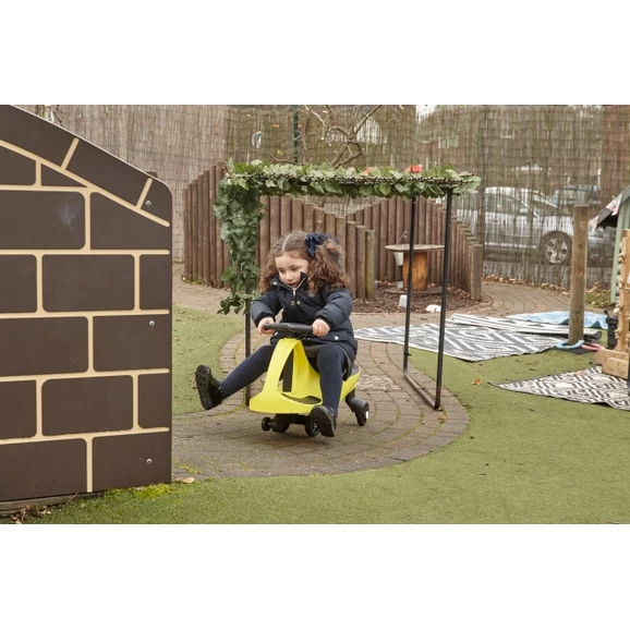 Didicar kids ride on cars have no pedals, motors, batteries or greasy chains. Riders simply turn the wheel left and right to move the Didicar forwards. Flip the wheel, and the Didicar then goes backwards! Didicar works best when used on hard, smooth, flat surfaces. It can be used both indoors and outdoors and glides across the concrete, paved surfaces and other open areas.