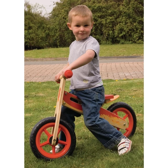 This wooden Balance Bike is a great way for youngsters to start a journey towards full two-wheeled mobility! Features a padded, adjustable seat, long lasting solid tyres and easy to grip handle bars. Just push forwards and go! An excellent way to improve balance whilst further developing hand/eye coordination. Maximum weight: 25kg. Size: L800 x W380 x H550mm.Buy the red and blue balance bikes together and save £30 against buying them individually – a saving of 25%.