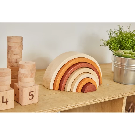 The Bigjigs Toys Natural Stacking Arches are made from smooth solid wood and coloured with non-toxic paint in neutral shades. The set contains 6 nesting arches as well as the inner block being a solid 3D semicircle. Perfect for open-ended play, children can learn colours, balancing, stacking or creating anything their imagination can invent!