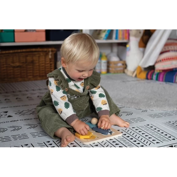 The Woodland Animal Shape Puzzle can help little ones develop their shape and animal recognition as they match the shape to the correct animal slots on the wooden base. This jigsaw puzzle is suitable for little hands as they can use the big wooden knobs to lift up the chunky shapes to reveal the animal underneath. Lift, grasp and examine each puzzle piece. The soft colour palette helps engage early learners and when playtime’s over, this puzzle can be neatly stored away with everything intact.
