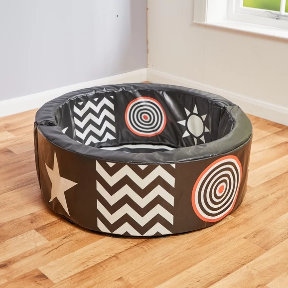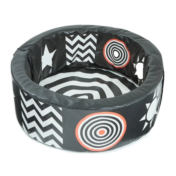 The Black and White Sensory Ring from Hope Education features a variety of black, white and red patterns around the sides and on the base to engage early eyesight. Babies can either be seated inside or laid down on their tummies to engage with the patterns.