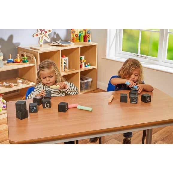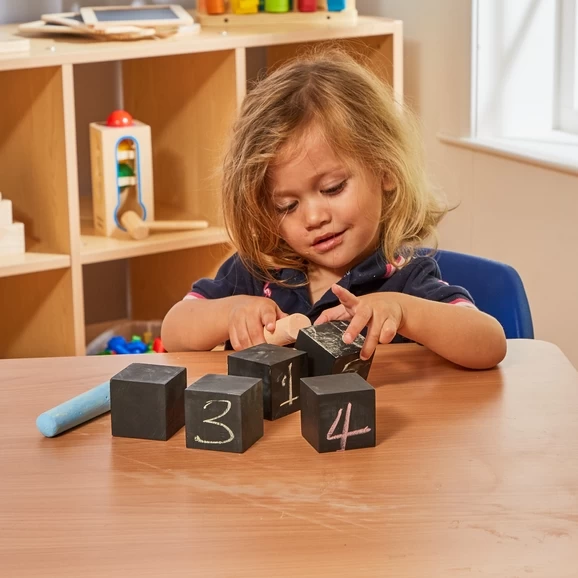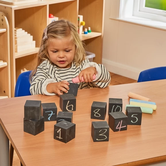 This great set of 12 Chalkboard Cubes from Hope Education can be used for construction and drawing, as well as using for early English and maths for simple spelling and addition and subtraction. A great multi functional addition to the range! Size: 5 x 5 x 5 cm.