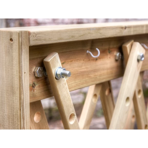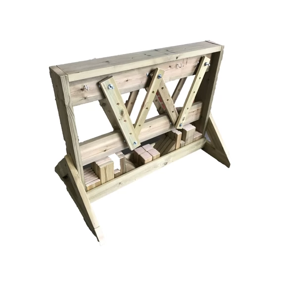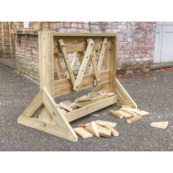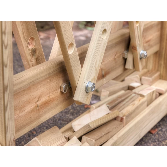 Position, place, screw, pull and build! Children will love mimicking DIY jobs with this Construction Wall. The set includes wooden planks with drill holes, so they can be attached to the frames as well as a variety of wooden construction blocks. Bolts are fixed to the wall, and screwing the nuts that are included will aid development in fine motor skills and hand-eye co-ordination, as well as increasing problem solving skills.
