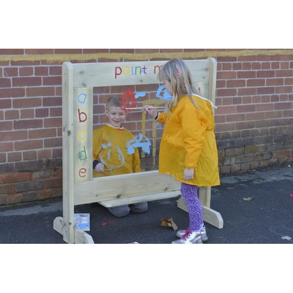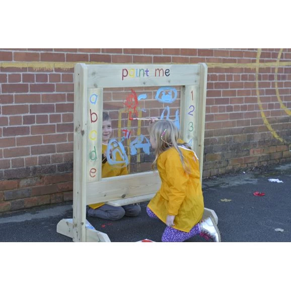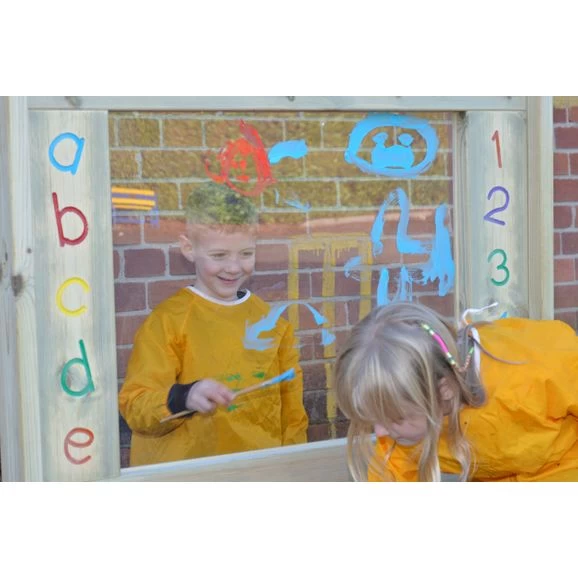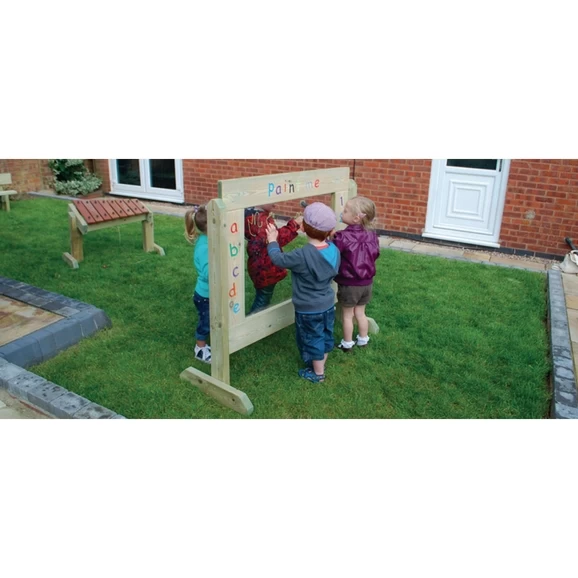 - Built in a sturdy wooden frame, its central feature is its clear perspex sheet that’s ideal for chalk pens or water based paints.