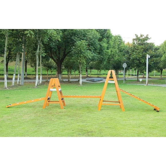 - Manufactured from a highly durable sustainable wood that is suitable for external use without ongoing preservative treatment. Climbing rails are made from rust resistant galvanized steel and platforms are manufactured from robust plastic – with a high tensile strength and resistance to harsh environments.