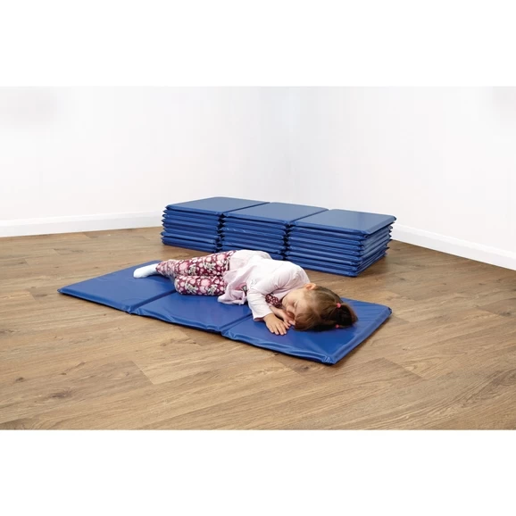 Our great value Folding Rest Mat is durable for regular use as we know that sleeping is an essential part of the day in nursery settings. The outer vinyl is soft and wipe clean and the seams are welded for hygiene. The space saving design allows the mat to be folded in 3 and stored easily.
