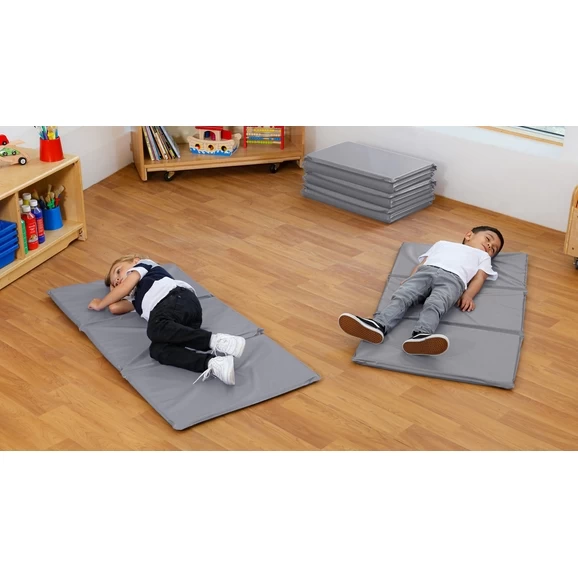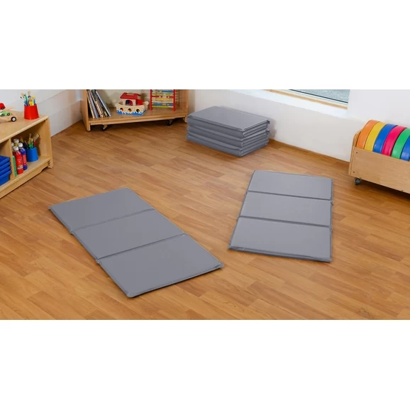 Our great value Folding Rest Mat is durable for regular use as we know that sleeping is an essential part of the day in nursery settings. The outer vinyl is soft and wipe clean and the seams are welded for hygiene. The space saving design allows the mat to be folded in 3 and stored easily. The grey colour helps to provide a calming home from home environment.