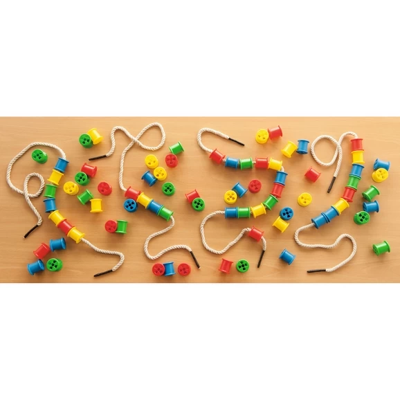 A great value resource to entertain multiple children at once! These cotton reels can be used for threading and lacing, stacking, counting and sorting.