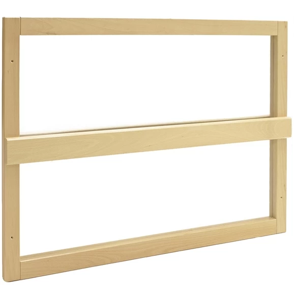 This beautifully made Wooden Baby Rail Mirror has been specially adapted to hang horizontally on a wall. The rail across the mirror can be used by a baby to pull themselves up into a standing position whilst watching themselves in the mirror. Solid beech construction.