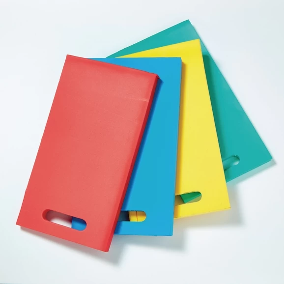 Pack of 4 brightly coloured child size gardening kneelers, made from wipe clean EVA foam. Each kneeling mat is L360 x W200 x H20mm and includes a carry handle.