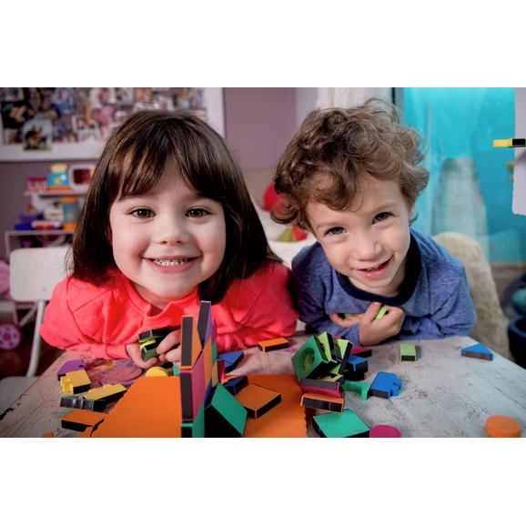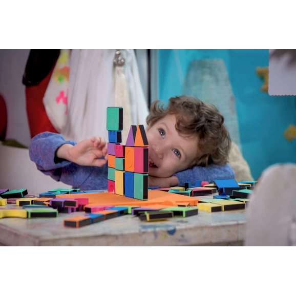 Unique 3 dimensional construction system which uses magnetic attraction to link the 54 colourful building blocks. Ideal for construction activities and discovering magnetic properties. Includes 1 baseboard.
