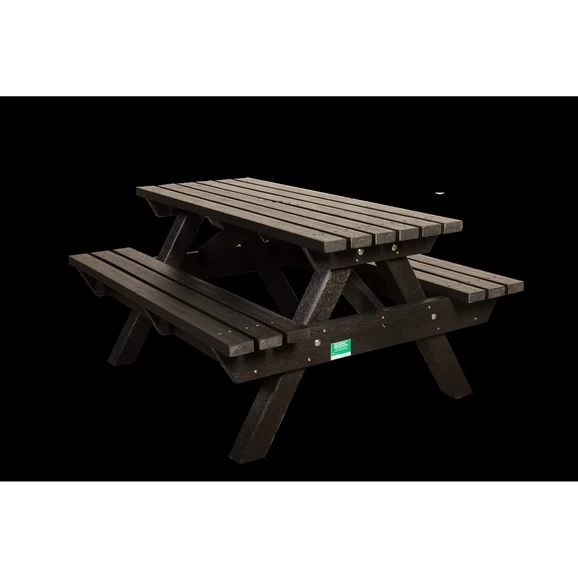 This adult heavy-duty picnic bench is manufactured from 100% plastic waste. It has a robust construction and a textured surface with a centre hole, 38mm for a parasol. The recycled plastic contains the equivalent of over 2000 plastic drinks bottles; recycled plastic does not fade in the sun, nor will it rot or splinter and is a maintenance-free seating option. Suitable for adults and children aged 7 +