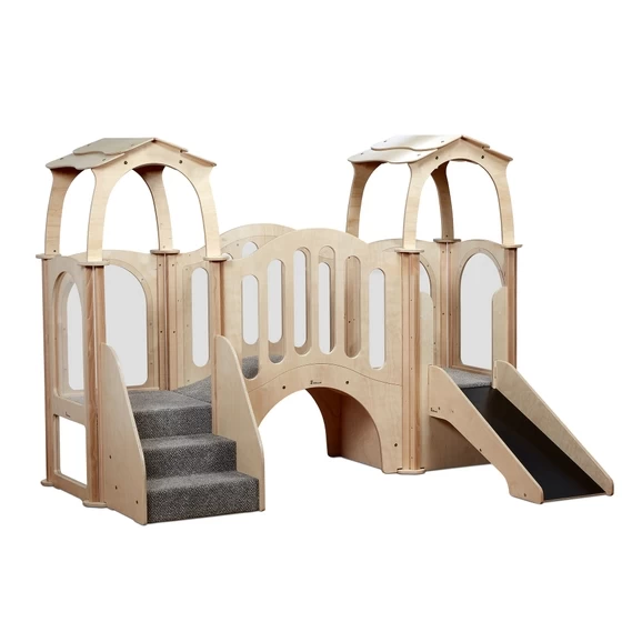 - Perfect for any baby or toddler room, encourage active play with the Playscapes, Hide N Slide Kinder Gym (with Roof)!