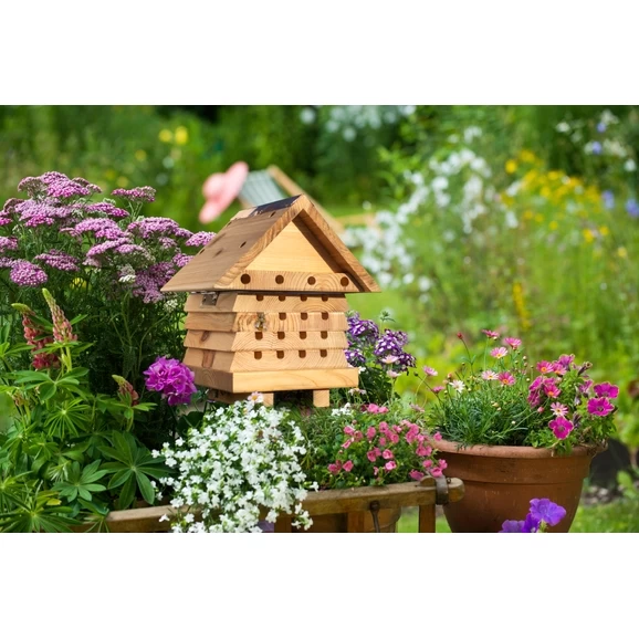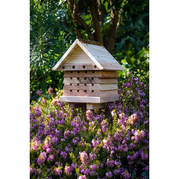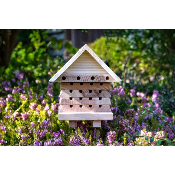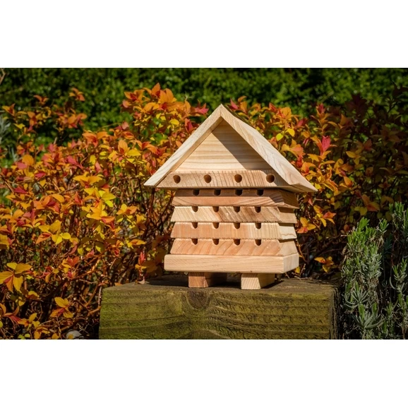 The hole sizes of this habitat are precisely specified to attract non-swarming bees like the Red Mason Bee, Leafcutter Bee and other solitary bees. These friendly bees are industrious and safe around children and pets. The bees are naturally attracted to holes in wood, and the solitary beehive provides a habitat that has become harder to find in modern gardens.