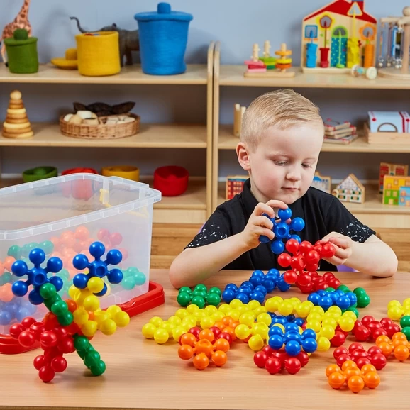A set of 60 large durable connectable stars in bright colours, making construction easy for little hands. Supplied in a handy storage container making them easy to tidy away and store.