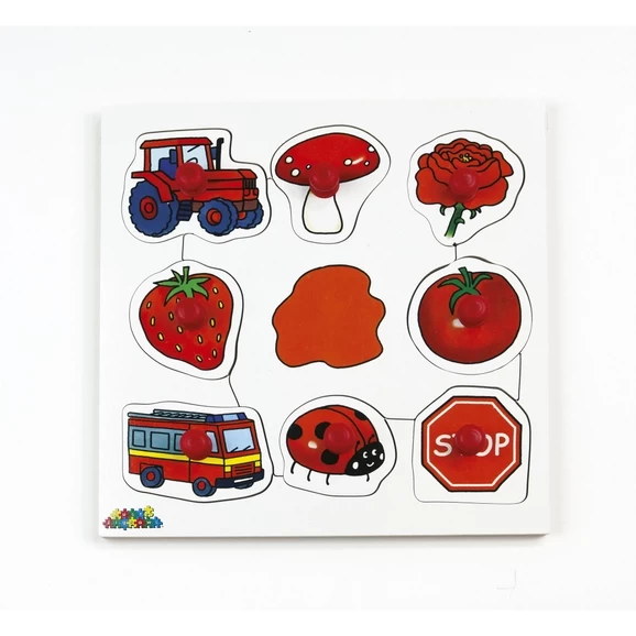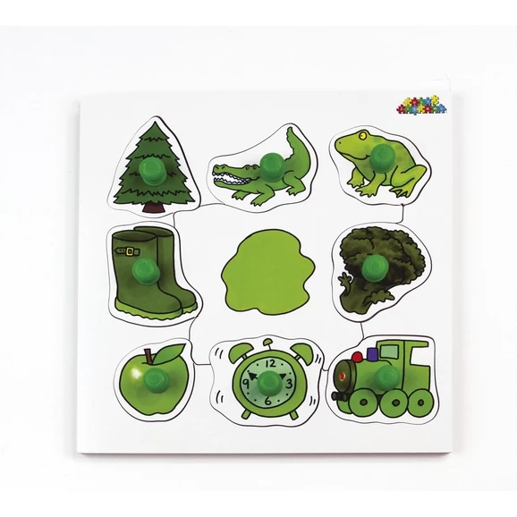 This wooden peg puzzle encourages children to group objects by colour. The colourful illustrations allow children to relate these to the real world and promotes discussion.