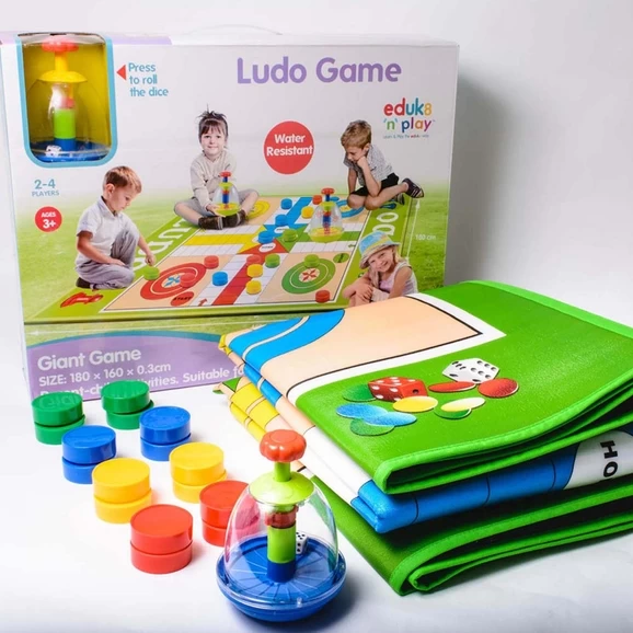 A traditional board game made mega! Players must race each other to get all their pieces home. Supplied with a large dice domes so no lost dice! This large Ludo board game is a great way to develop: