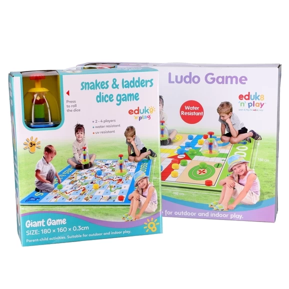 A set of two traditional board games made mega! Players must race each other to be the winner. Supplied with a large dice domes so no lost dice! These large board games area great way to develop: