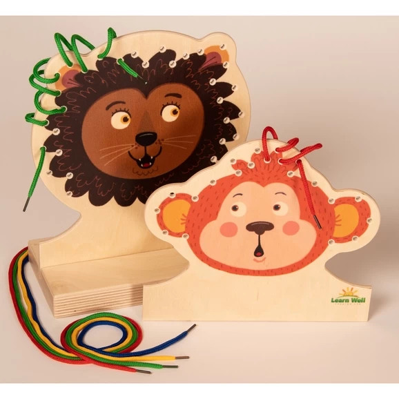 There are lots of lacing activities to be found, but none quite like these! These cheeky characters are big enough to give children something to hold with one hand as they lace with the other. For those children just starting or struggling with the challenge of hand-eye coordination, there is a handy stand; enabling you to lace with both hands and look around the back! As they successfully pass the colourful laces through the holes, children will be delighted to see the crazy hair they have created. Hand-made from beautiful beech wood, these colourful characters will become a much loved and essential resource for years to come.