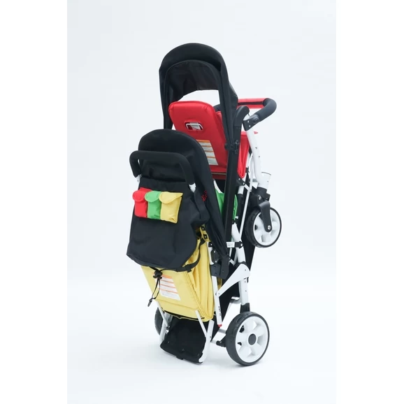 It is lightweight, durable, easy to manoeuvre, easy to fold and manufactured to the highest standard. It features two canopies that cover all three seats, a spacious shopping basket, a removable bumper bar and specially designed seats with side protection and footrest.
