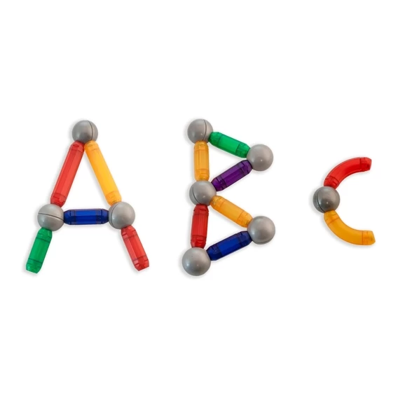 This Magnetic Construction pack can be used for many things such as: buildings, numbers, letters and many more! It can also contribute to the learning of colours and spatial orientation as well as experimentation with magnetism. The unique rod and ball configurations are a wonderfully inventive way to help children discover principles of science, construction and engineering (STEM) while developing their creativity. The bigger translucent pieces help make grasp and manipulation easier (ideal for little hands), whilst the strong internal magnets help strengthen the connection between pieces.