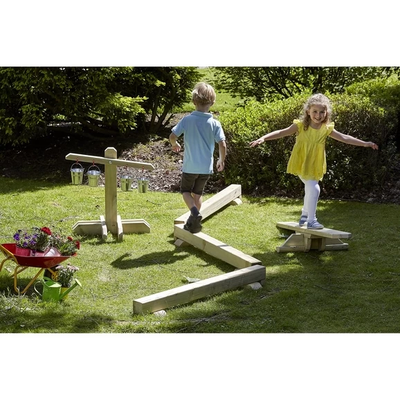 - Children will enjoy testing their balance skills as they walk across the wooden beam.