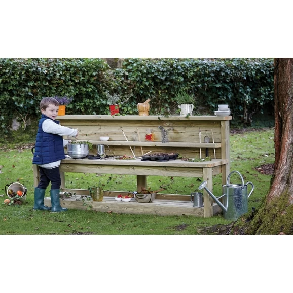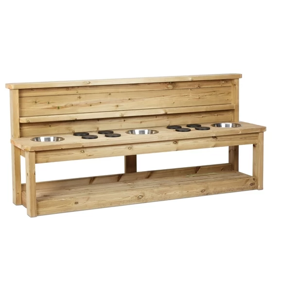 Perfect for group play, the Five Station Kitchen features 2 x sets of hobs and 3 x removable bowls. The upper and lower storage shelves provide ample storage space for pots, pans and other resources. Dimensions – W2000 x D500 x H900mm (470mm worktop height).