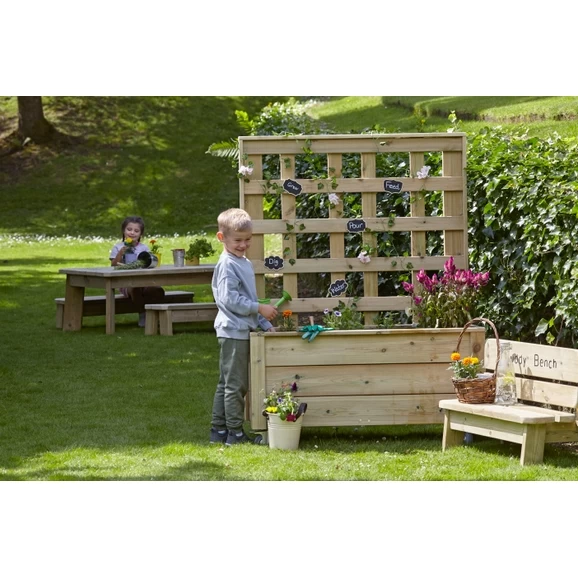 This charming Mobile Planter with Trellis is perfect for encouraging children to water, pour, dig and feed plants. The mobile design makes it easy to transport around the garden as needed, and the trellis design provides added flexibility allowing the unit to be used as a space divider if required. Â