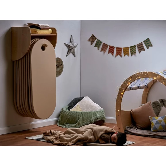 Slumberstore is a creative nap time solution which cleverly combines comfortable sleep mats with space saving, efficient storage. Beautifully made from premium maple melamine with solid beech features, these wall mounted units are sturdy, durable and easy to clean. Each unit is supplied with 10 high quality sleep mats which have an easy clean matt finish and high density foam core which resists bending, twisting and sagging. The unique design of Slumberstore means that the mats can be stored when not in use without the need for folding, making them easy to use and freeing up valuable space within an early years setting.