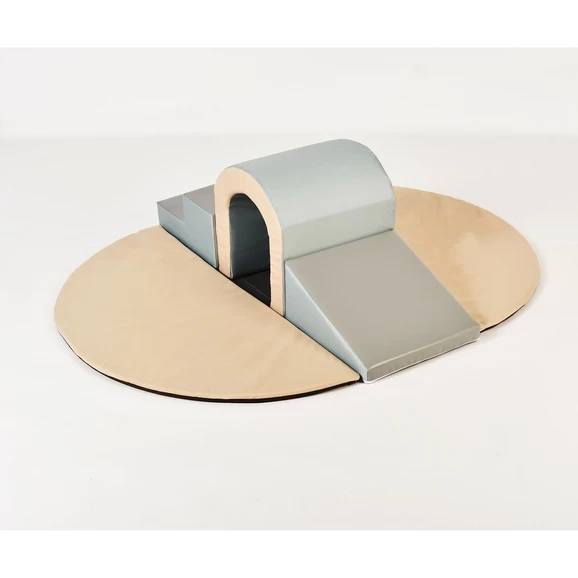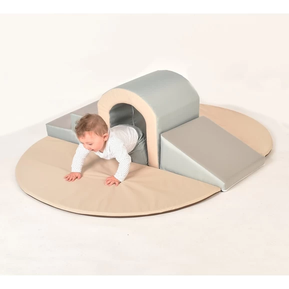 The Toddler Tunnel Soft Play Set allows toddlers and infants crawl around playing hide & seek, peek-a-boo and general play without harming themselves. Made from a collection of 400mm soft play modules/pieces offered in varied combinations to make up different sets. Each modular piece joins on the underside of each component by means of a hook and loop system, whilst the outer cover has a wipe clean surface. Ideal in any nursery setting! The five piece soft play set is designed for very young but mobile children, crawling and toddling for adult supervised activities in nursery schools and other childcare institutions. It is also suitable for temporary/occasional use outside (not storage & not use in wet conditions due possible ingress of water through seams) and for permanent use and storage indoors. Exclusive to Hope Education. Age Suitability 12 Months +Â
