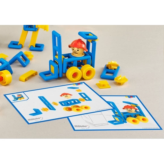 The geometric base elements such as cube, square, ladder, triangle can be intuitively combined with connectors to become fancy cars, aeroplanes, buildings, machines, figurines and much, much more. plasticant mobilo® construction toys are durable well above average, completely washable and of course 100% resistant to saliva. A wonderful and timeless companion for all kids of preschool age. And a valuable contribution to a better world.