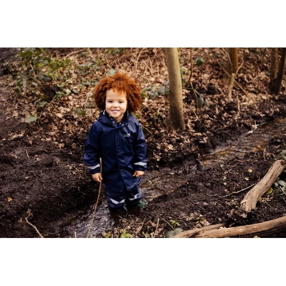 Bring on the rain! This super waterproof (up to 10,000mm) PU jacket is made from recycled fabrics and is designed to keep children dry and happy even on the rainiest of days. Made from flexible, soft PU, the jacket is durable and perfect for tumbling around in. Designed to allow extra room for warm layers on chilly days, it is perfect for outdoor adventures come rain or shine. The jacket has taped seams and the cuffs, hem and hood are elasticated, so rain and wind will not get in. We have added a handy zip to make this jacket even more protective. The raincoat features reflective details for high visibility, so you will easily spot your child outside on darker days. Machine washable.
