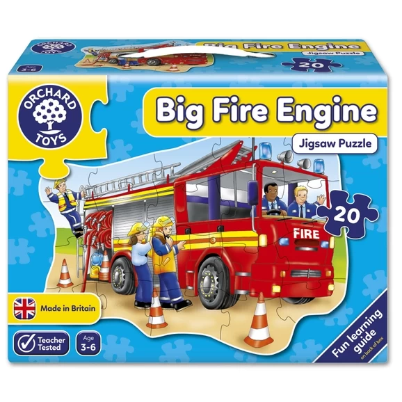 Watch the cheerful firefighters getting ready for action by piecing together this big red fire engine!Big Fire Engine includes a fun learning guide on the back of the box, which features different discussion points to talk about once the puzzle has been completed. This includes questions to encourage observation, reinforce counting skills and develop knowledge of the world, e.g. Can you see something that is round? Why do you think the fire engine has ladders?