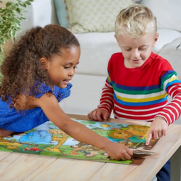This colourful 25-piece jigsaw features a busy jungle scene with lots of wild animals to spot, including tigers, lions, elephants, monkeys and crocodiles! Who’s in the Jungle also includes a fun learning guide on the back of the box, which features different discussion points to talk about once the puzzle has been completed. 25 Pieces.