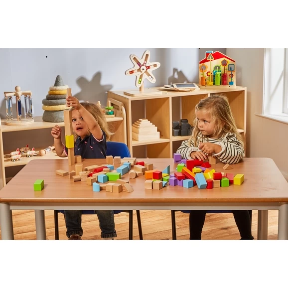 Features 100 quality wooden blocks in a variety of shapes, sizes and colours with rounded edges and smooth paint. Boost child’s creativity and dexterity as they learn to build from their imagination.