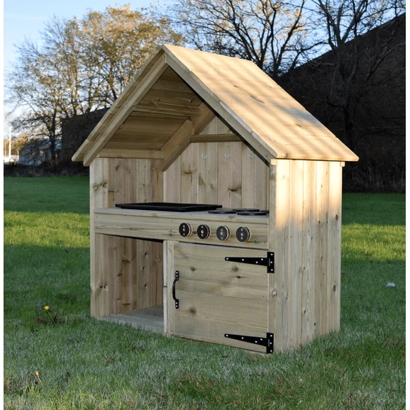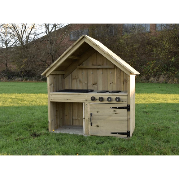 The Outdoor Creative Kitchen is a great freestanding resource for children to get messy and explore their imagination. Hooks are situated above the cooker which are ideal for hanging utensils, pots, and pans. There is additional storage below the cooker, a cupboard, and a shelf. Great for storing kitchen essentials! Children will spend ours cooking up a storm for their insect friends! Â
