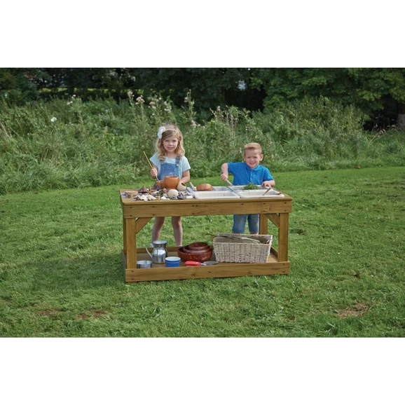 A fantastic Outdoor Messy Play Bench, perfect for messy mud or sand and water play. The wood has been treated with eco-friendly and child safe Nexgen treatment, which is specially formulated to protect the wood from fire, mould, mildew and insects. Comes with 4 sturdy plastic trays. Flat packed for easy self assembly.