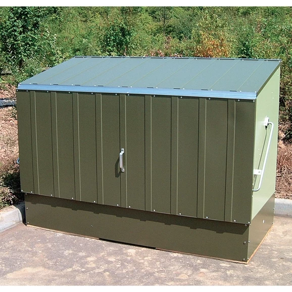 The Treasure Chest outdoor toy storage unit it the ideal way to keep toys and games safe and tidy. The unique patented design and spring assisted opening action allows for complete ‘walk in’ access to your stored items. Maintenance-free, fire resistant and constructed from a modern PVC coated galvanised steel which is guaranteed for 25 years against corrosion. These stores are supplied complete with integral metal floors (which can be easily cleaned / hosed out); and also two padlocks are included for security. They are supplied in a convenient flat pack and are extremely simple to construct as all major components are factory assembled for you, they come complete with all necessary fixings and easy to follow illustrated assembly instructions. Please note there is a 18 week lead time on this item.