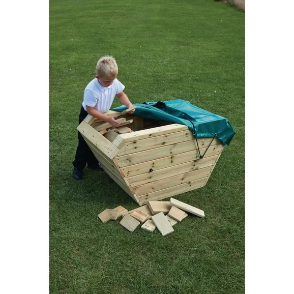 This solid Outdoor Wooden Skip and Blocks with Cover is filled with wooden blocks of different shapes and sizes providing whole classes and groups of children with endless construction possibilities – will they build a castle, a simple tower, or even the yellow brick road. The practical PVC tarpaulin keeps the blocks dry meaning this resource can be safely stored outside. Made from sustainably source Pressure Treated Redwood Timber,10-year guarantee against wood rot and insect damage.