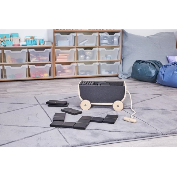 Children will love to put their favorite toys inside and pull them about the nursery with this beautiful toy wagon. Sturdy wheels with rubber grips ensure a steady ride. You can even create a wagon train with multiple wagons laced together with the rope. Beautifully crafted eco-friendly wooden toy from Plan Toys.