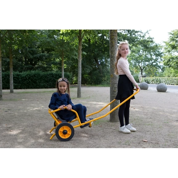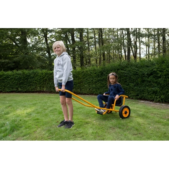 A RABO® Cart and a Rickshaw which encourages collaboration and co-operation. One child is seated and the other child pulls the vehicle, children can take turns promoting teamwork.