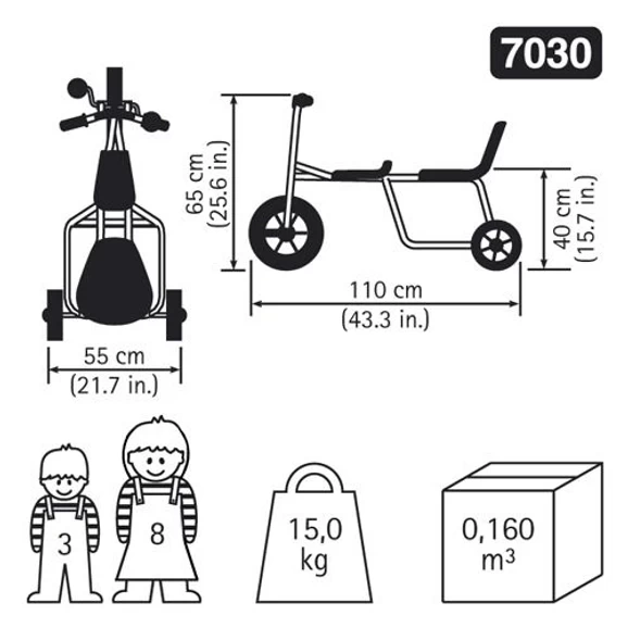 Where would you like to go? The RABO® Taxi Trike is a robust trike built for two. The passenger seat on this vehicle has a high back and an extra wide platform ensuring maximum safety. A great role play product that helps with children’s social interaction. Seat height 400mm.