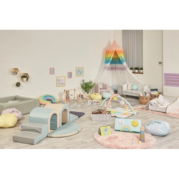 Evoke a sense of calm with the Rainbow Baby Gym from Hope Education in soft pastel shades. The use of colour has an impact on emotion, which can ultimately influence a child’s calmness, relaxation, happiness and comfort.