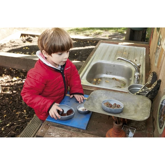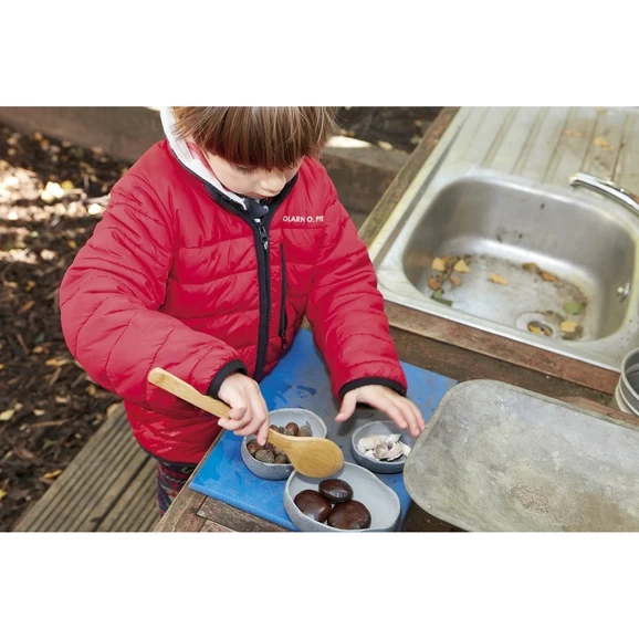 A set of rustic bowls that have been specifically designed to fit in small hands. Suitable for sand, mud and water making them fun for children that like to get messy. Alternatively they can be used for mixing, weighing or comparing volumes. Easily washed they can be used over and over for the mud kitchen, sand pits, water activities or use them for collections of stones, shells etc. Set of three nesting bowls measuring between 85-12mm.
