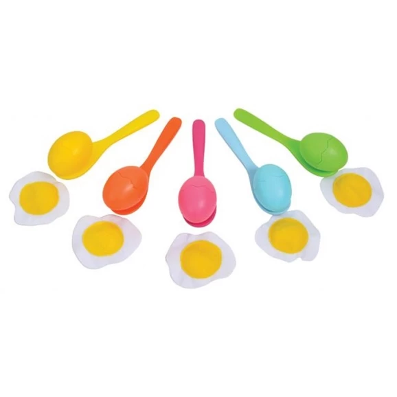 The new game from Schildkrot® contains 5 spoons in different colours and 5 eggs that ‘break and leak’ when they fall.
