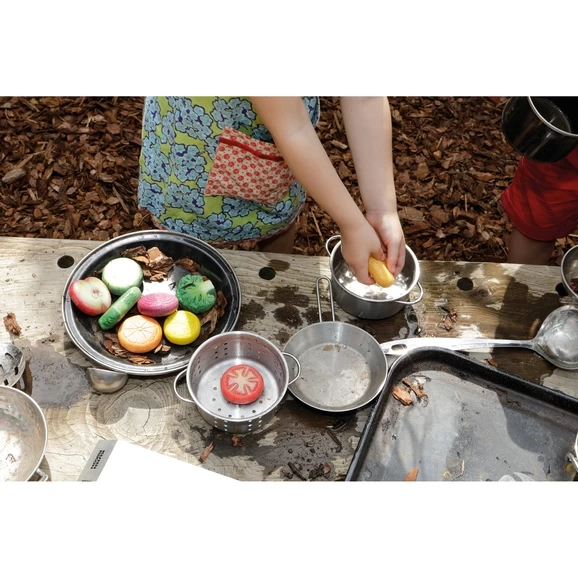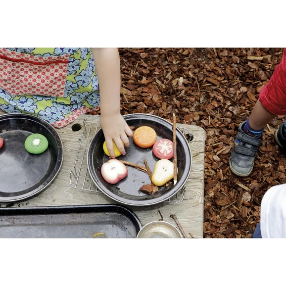 - Fresh from the mud kitchen or outdoor area comes fruit salad, poached fruit, cobbler and pies.