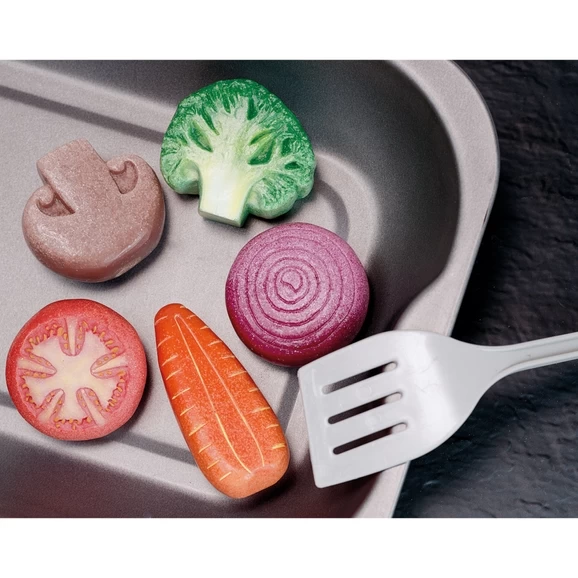 - Each set contains eight vegetables: tomato, pak choi, onion, peas, carrot, mushroom, cucumber and broccoli.