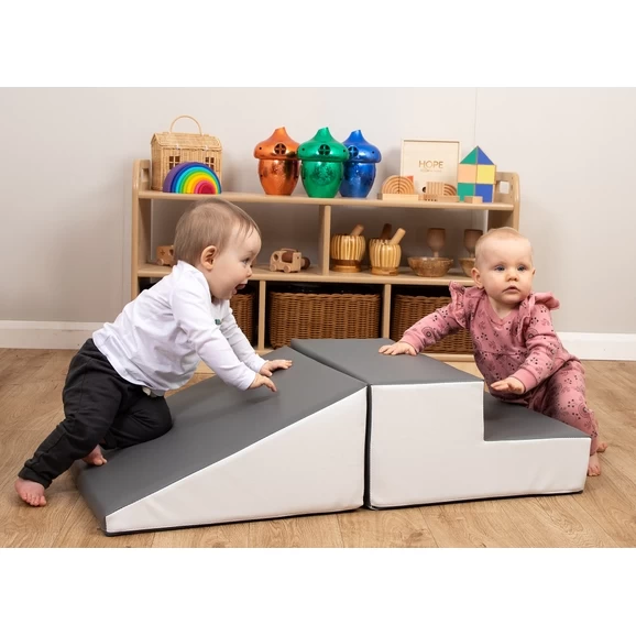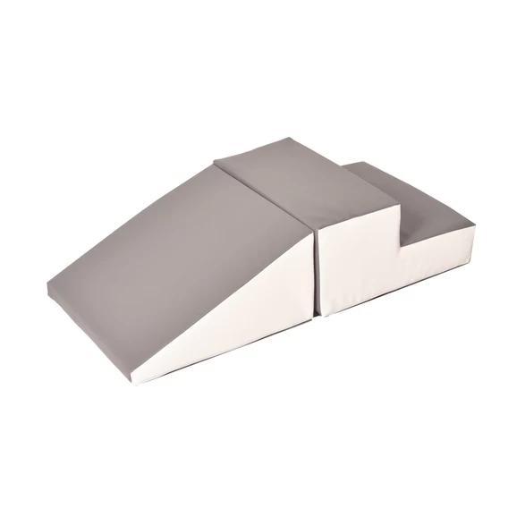 Our Step & Ramp Set is a perfect little play set for small spaces. Made from soft wipe clean materials in neutral grey and white. Great for encouraging physical activity.                                               Â