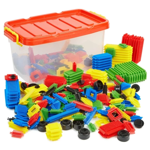 Interlocking building pieces, soft and easy to connect in virtually any direction. Great for creativity and fine motor skills. Various shapes and wheels included, providing endless options for little builders. Supplied in a clear handy storage tub making tidying up easy.