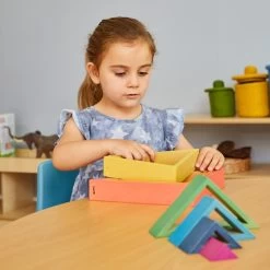 The TickiT Large Mirror Block Set comprises 8 large rubberwood pieces with double-sided acrylic mirror inserts. Ideal for shape recognition, for use on a light box, simple block building and for reflective pattern-making.